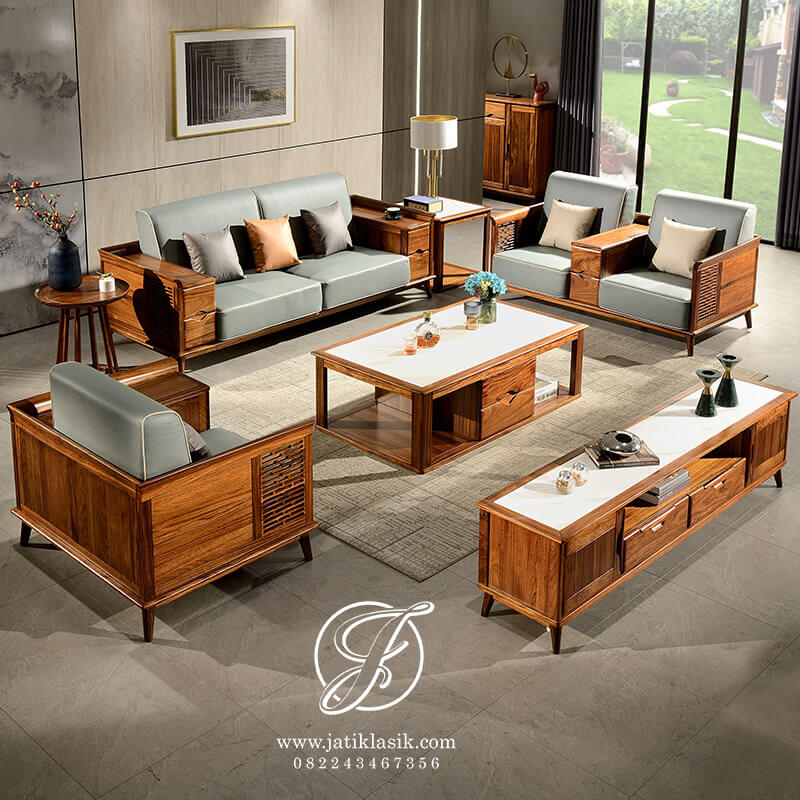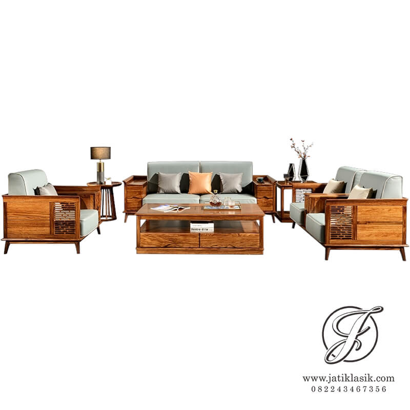 Desain kursi tamu sederhana, simpel dan elegan untuk dekorasi rumah minimalis modern. Perabot kursi tamu sofa memiliki laci pada setiap kursi serta kaki retro sangat kental untuk kursi khas Skandinavia yang dilengkapi dengan bantalan jok sofa yang empuk dan nyaman. Model kursi tamu jati terbaru untuk ruang tamu sempit 321 cukup untuk singgah keluarga dan tamu-tamu anda.