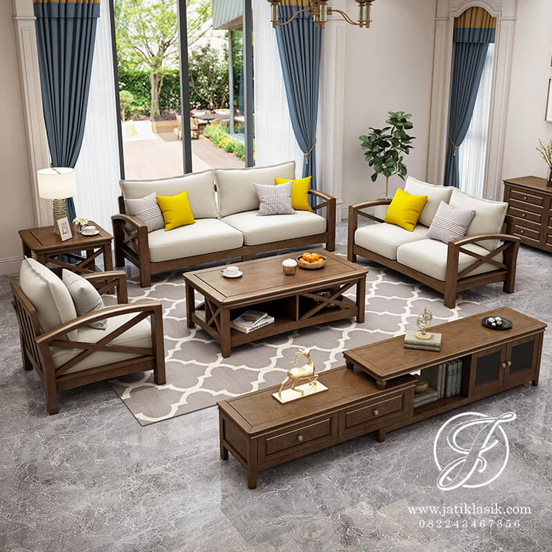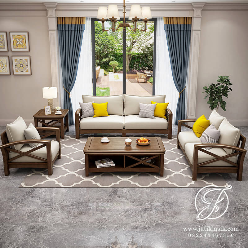 Perabot kursi tamu retro silang terbaru khas Amerika yang menyukai desain ruang tamu sederhana, minimalis, dan natural. Set kursi tamu 123 dengan meja kopi dan meja pojok melengkapi kebutuhan ruang tamu minimalis modern. Kursi tamu jati lengkap dengan bantalan jok busa yang sangat empuk dan nyaman untuk singgah dengan tamu anda.