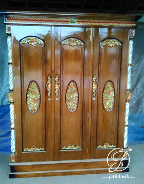 Model lemari pakaian jati peluru 3 pintu ini yang jelas sangat bagus dan dihiasi dengan ukiran. Lemari jati peluru ini dikatakan peluru karena ada bubutan yang menyerupai peluru yang terletak pada sisi kanan-kiri. Lemari pakaian 3 pintu ini sangat cocok untuk melengkapi perabot rumah anda serta harga lemari jati ini sangat kompetitif.