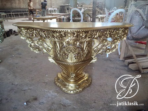 Desain Meja Konsol Ukir French Mawar Emas